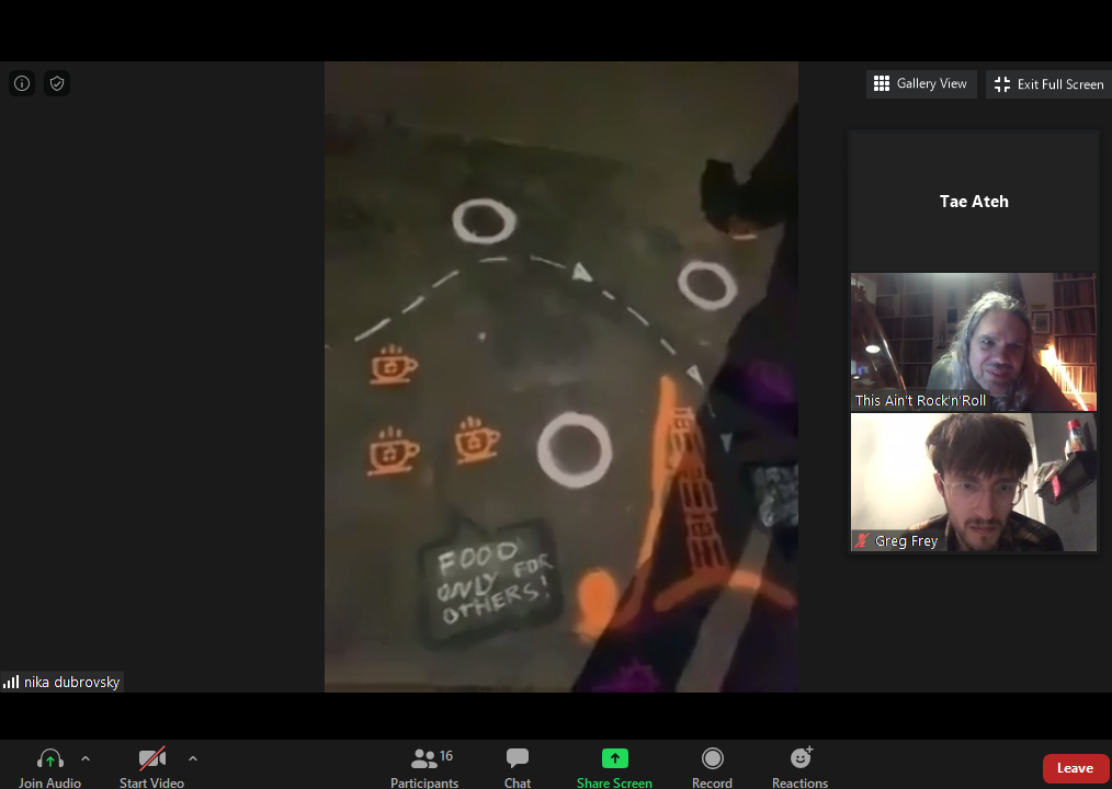 We feel the pandemic both compels us to and provides us an opportunity to take a fresh approach. Some of us have a lot more free time of late (thanks to quarantine). Online chats are a free space, at least in the sense of nothing we say there is (yet) controlled or censored. But most of us are also frustrated by endlessly listening to each other only in the form of online heads. A Visual Assembly, in contrast, being both online and offline, will be both a direct action, and an opportunity of discussion, at the same time. It involves the collective creation of an artwork by online participants as a way of brainstorming utopian possibilities; a work of art that will not only physically exist as a continual point of reference during the discussion, but will remain after the event disappears into the virtual archive. The idea would be start with an initial image: say, the floor-plan of a hospital, drawn on a real physical floor. This image is just a framework, though, for a larger conversation; gradually, as participants make decisions about the details of how the hospital will be run. The artists will translate those decisions into further details literally on the ground. It is crucial though the artists occupying the actual space are mere mediators for decisions being made collectively, by consensus, by everyone taking part. This process will hopefully provide one model for the very kind of collective management that conventional healthcare kills off, and which alternative